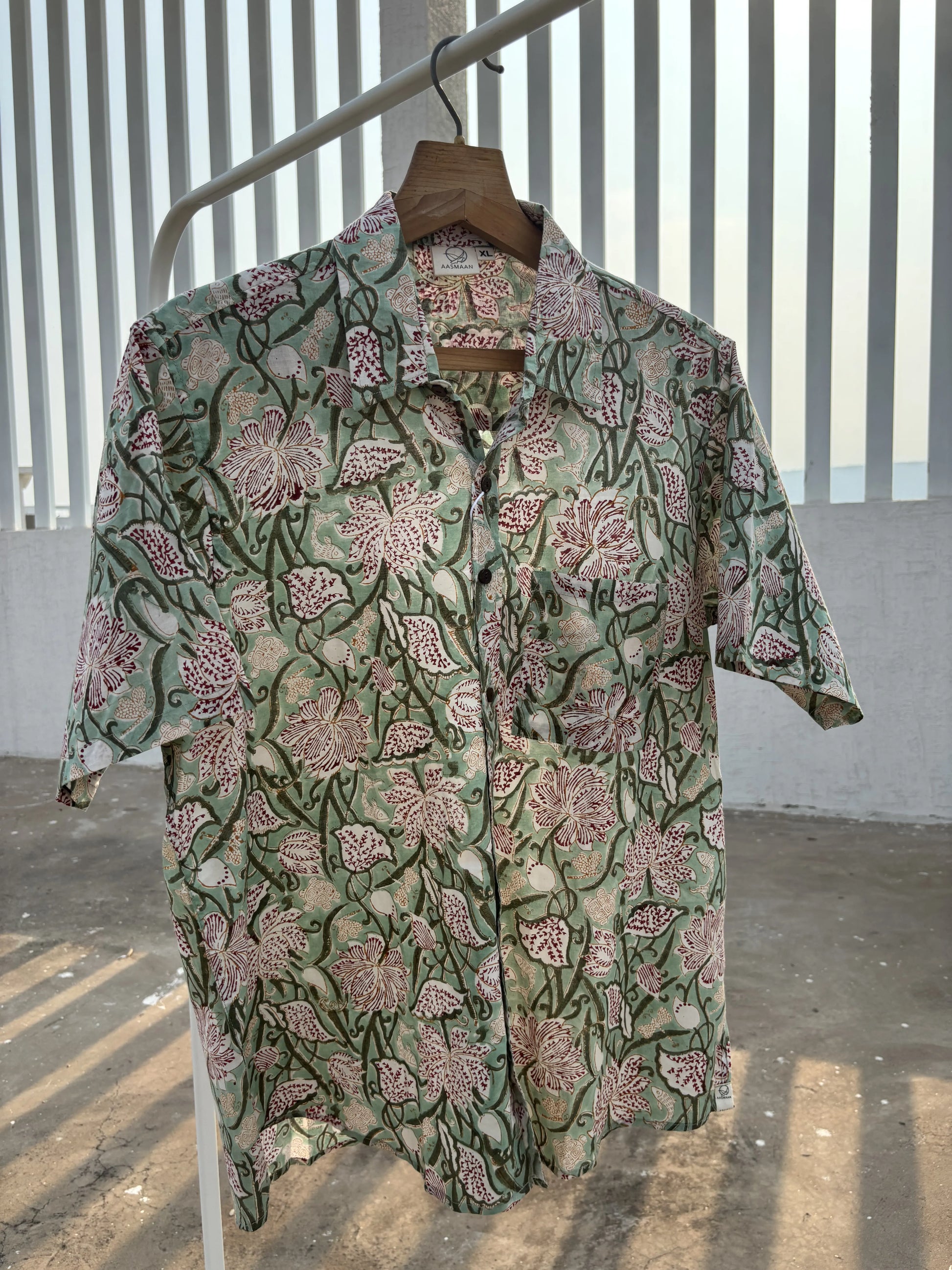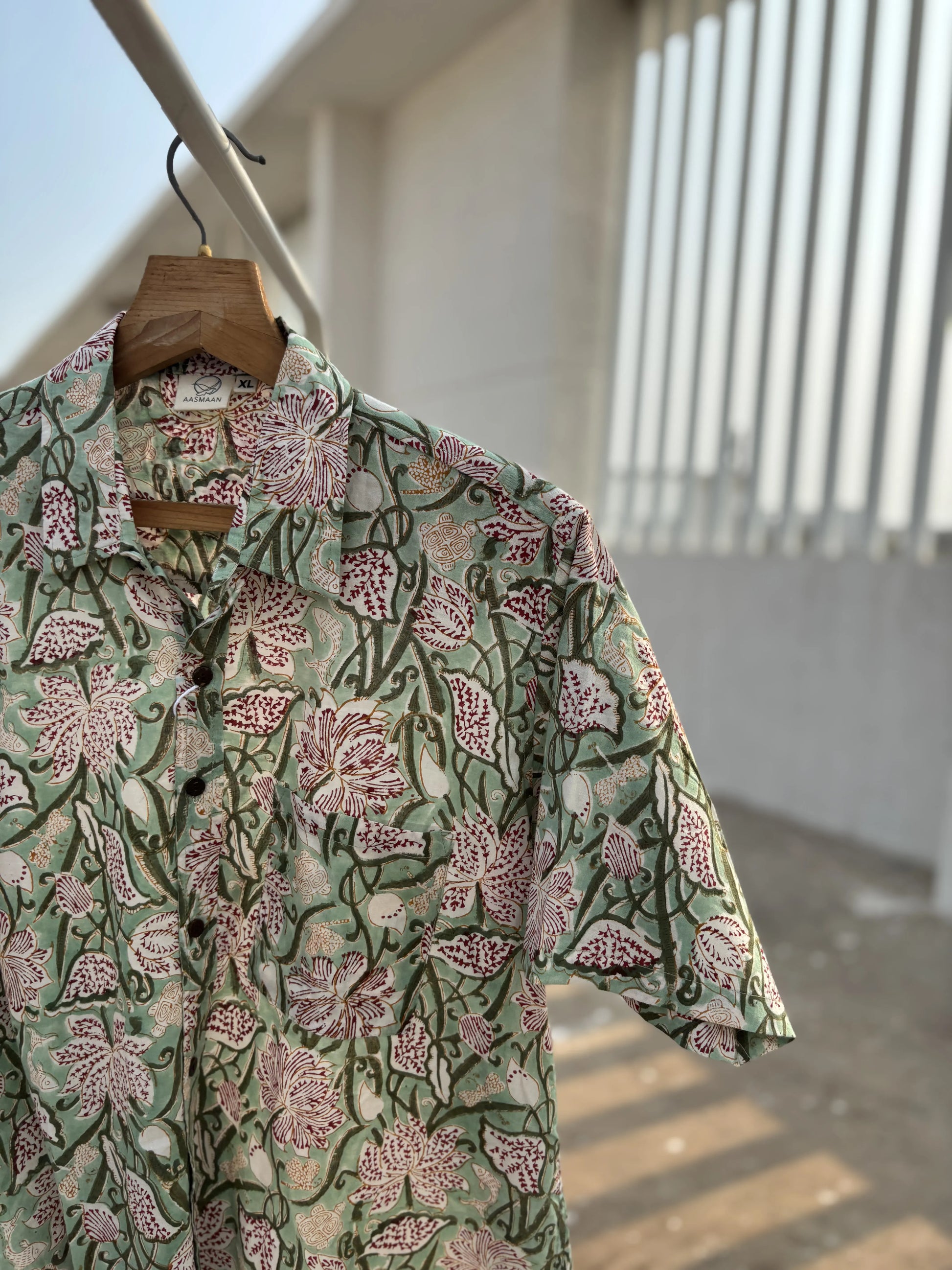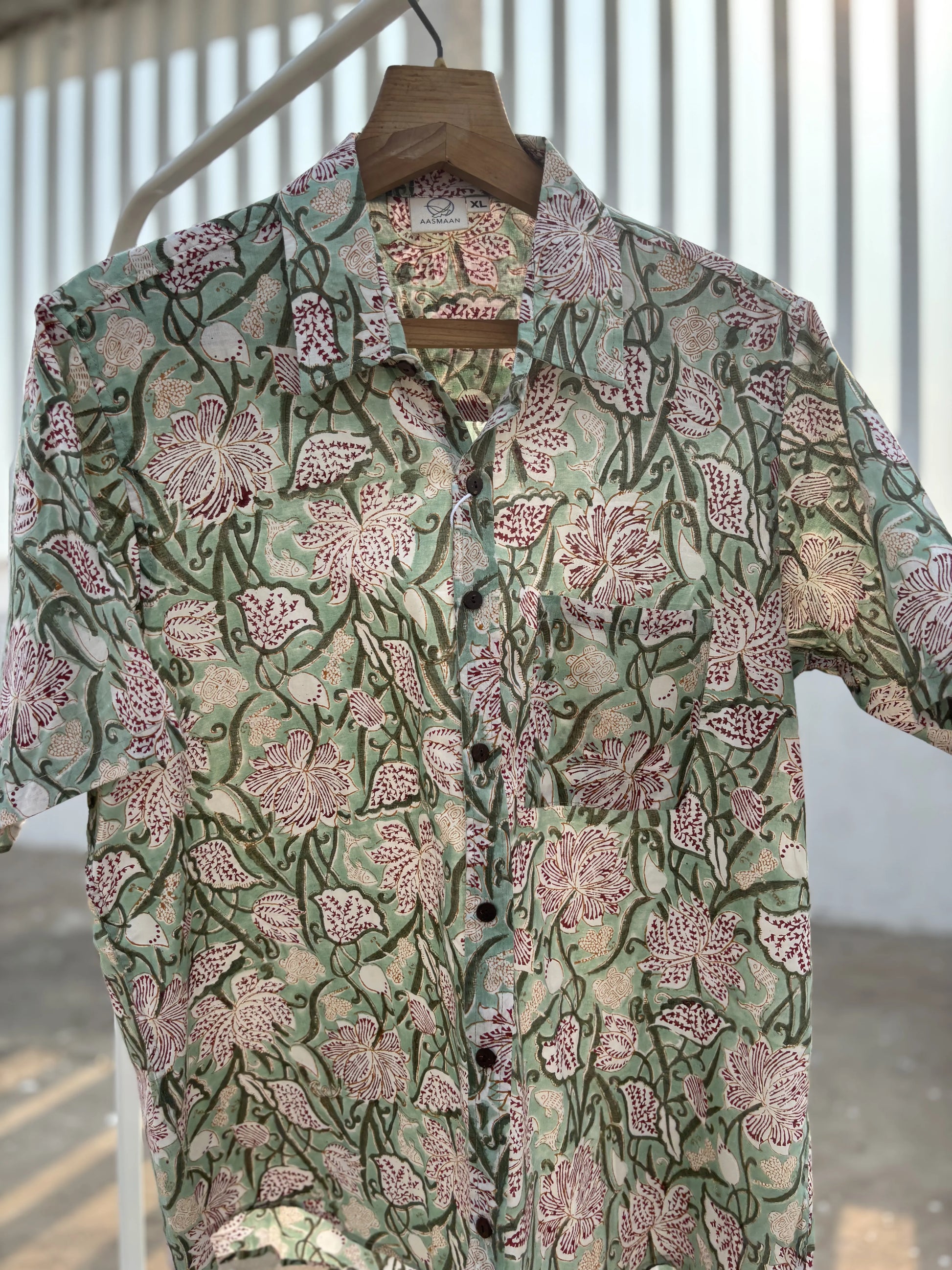 Green Floral Sanganeri Cotton Shirt for Men – Hand Block Printed