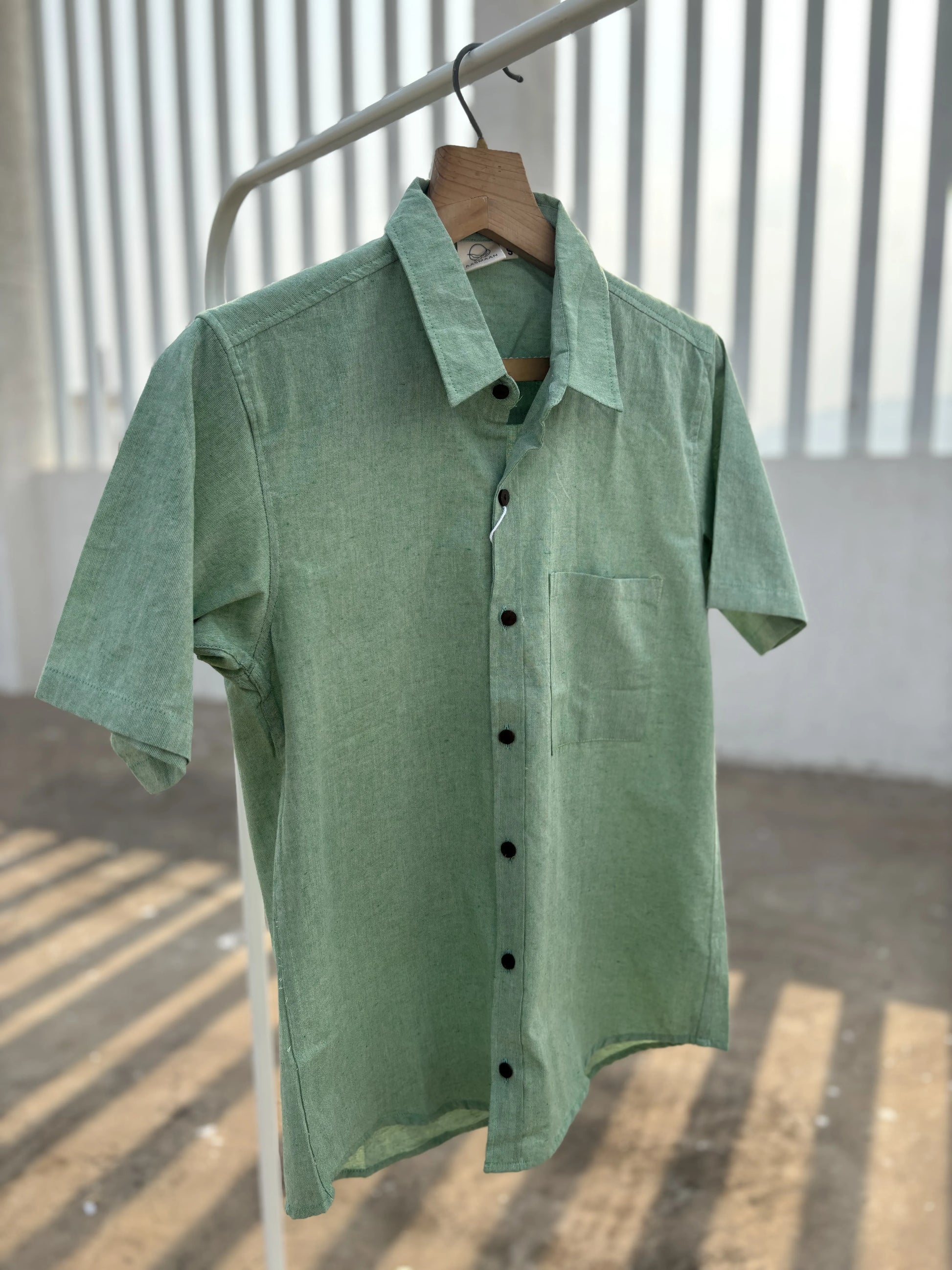 Green Handwoven Cotton Shirt for Men | Aasmaan