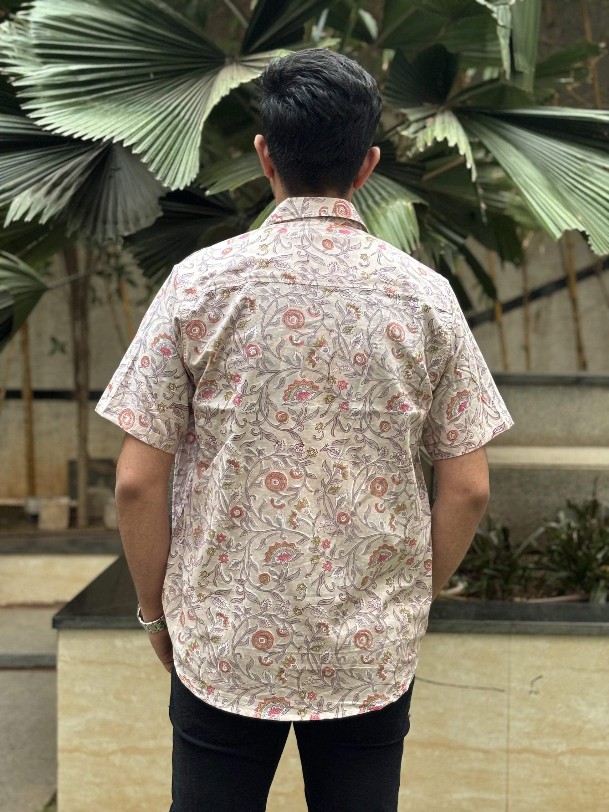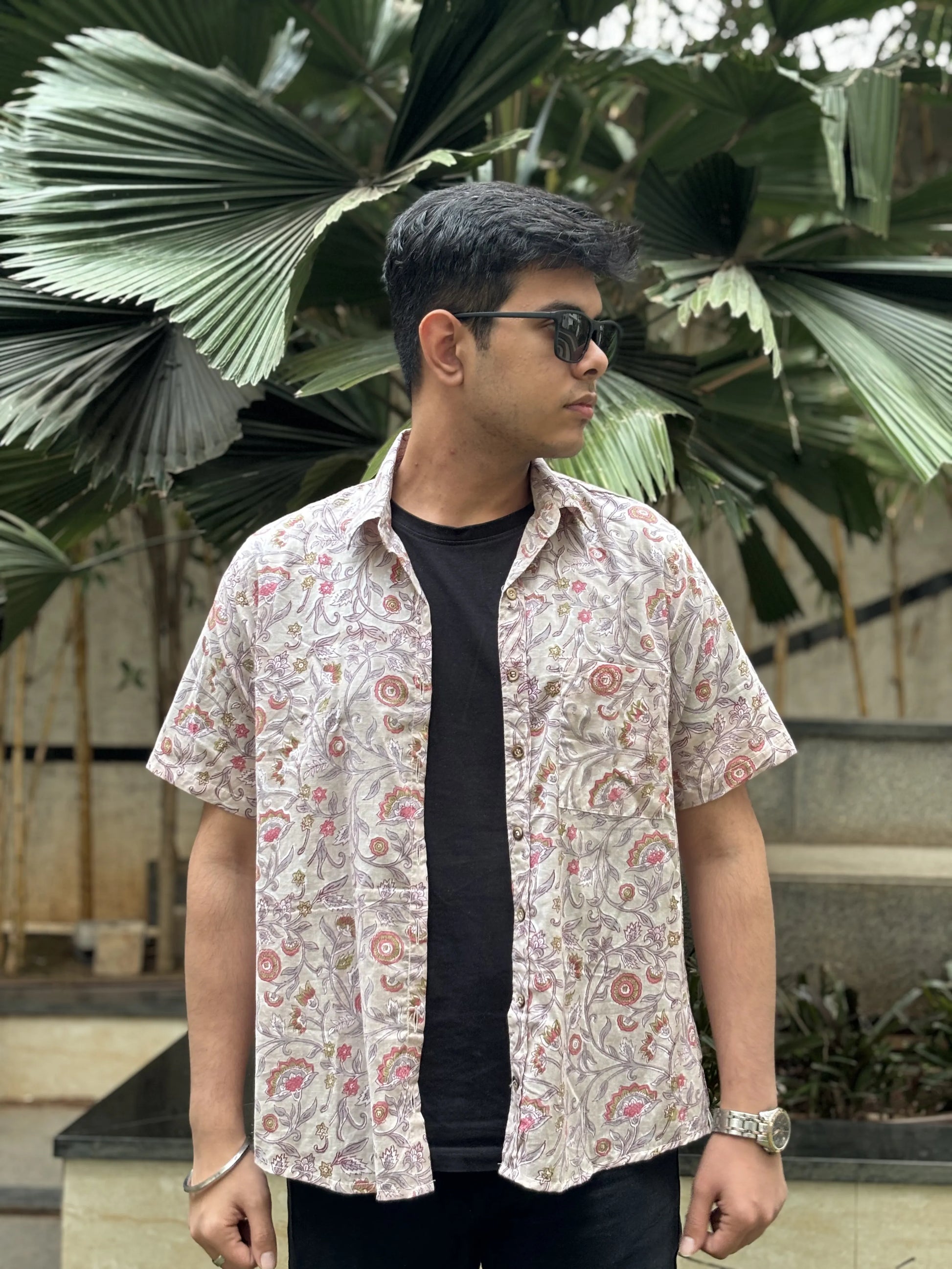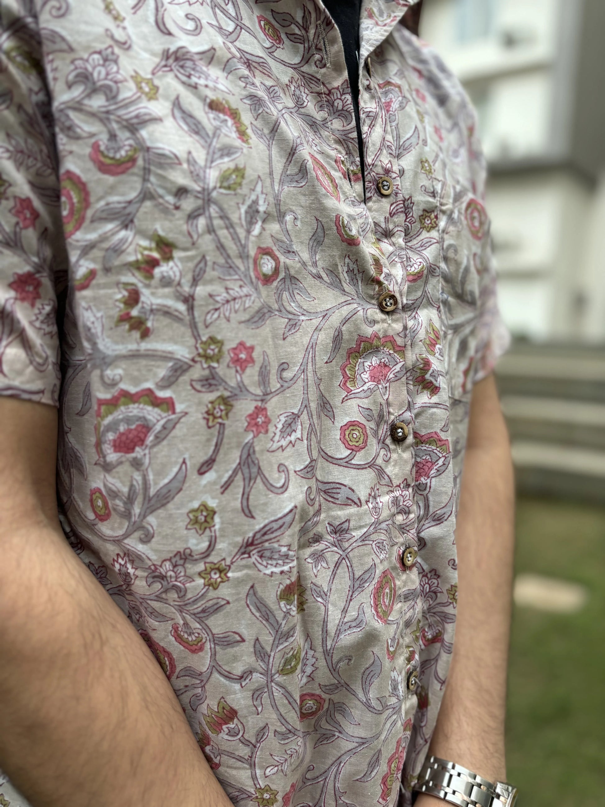Grey Floral Sanganeri Cotton Shirt – Hand Block Printed | Aasmaan