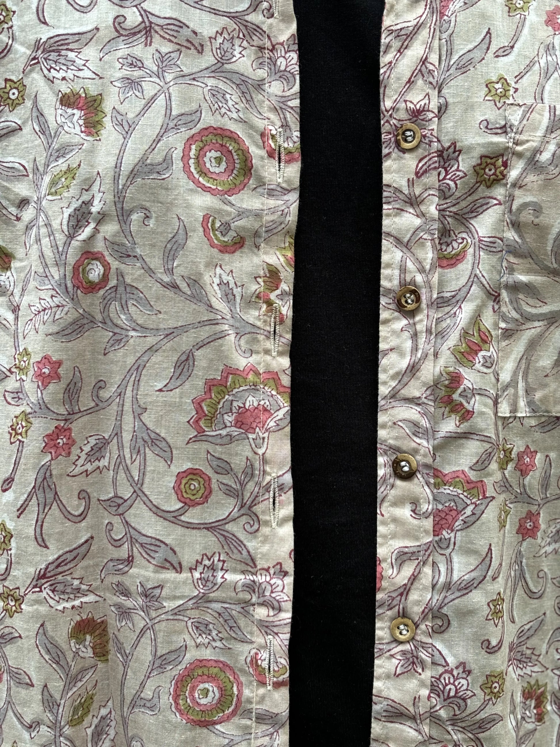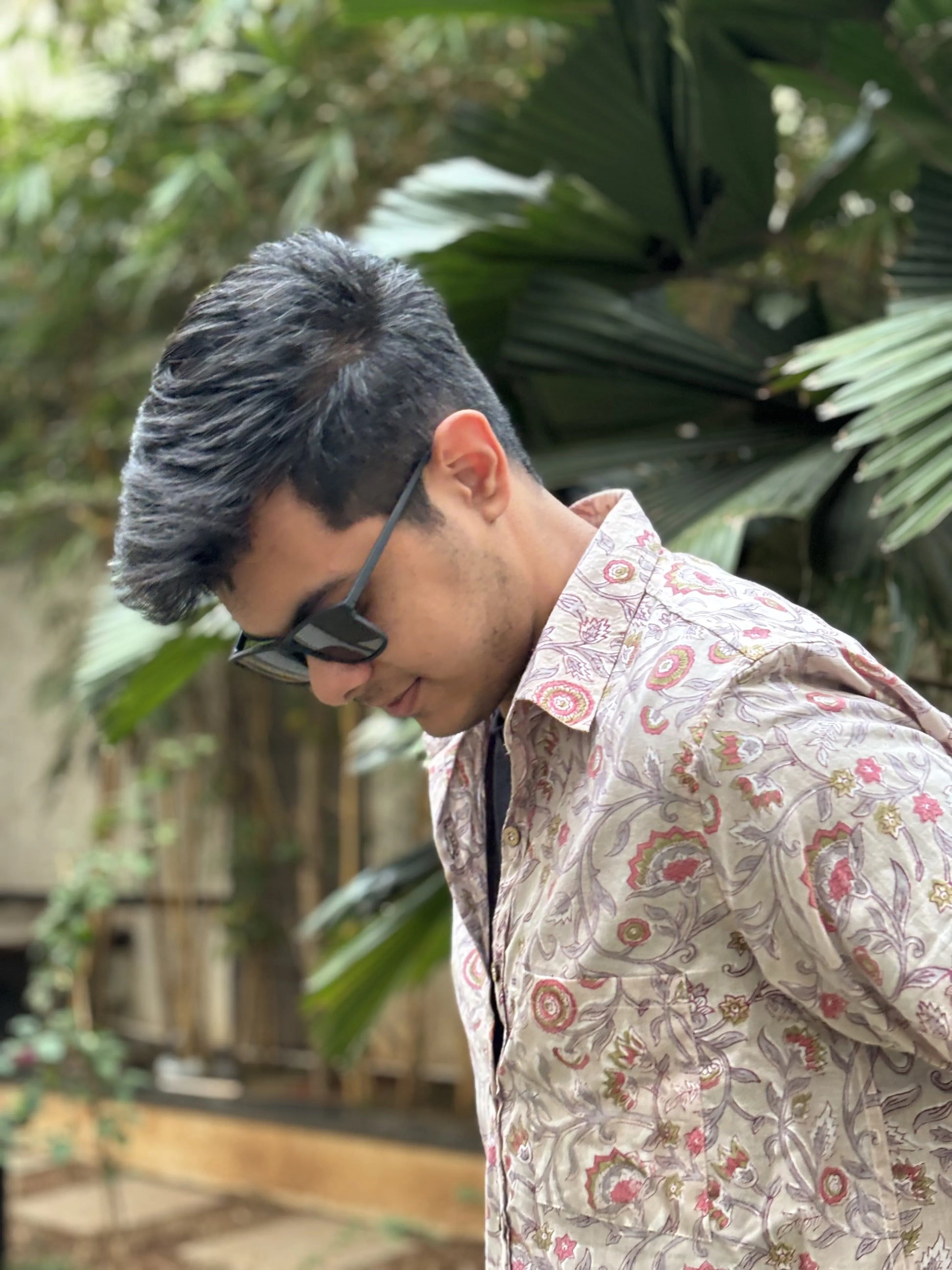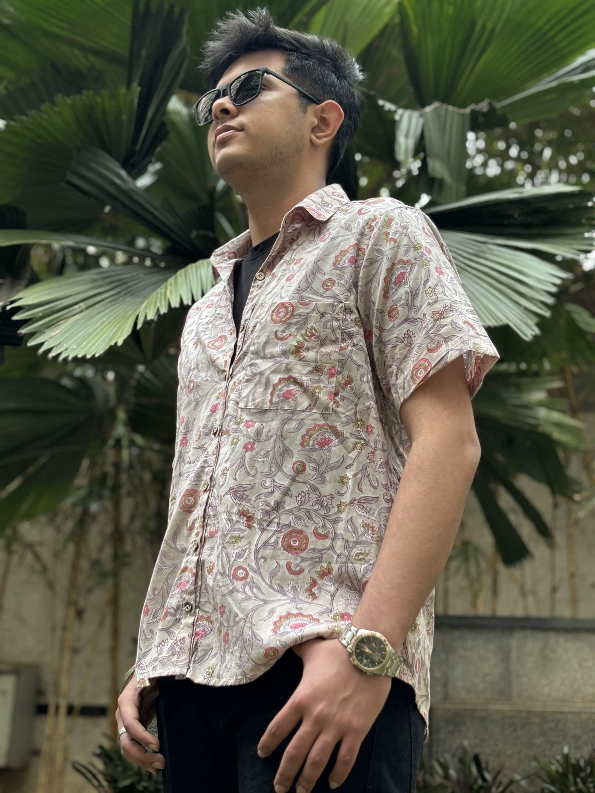 This grey floral cotton shirt blends timeless block printing with everyday comfort. Featuring delicate Sanganeri motifs, coconut shell buttons, and a relaxed fit, it’s your go-to piece for days that call for effortless charm. Pair it with neutral trousers or shorts for an easy, breezy look.