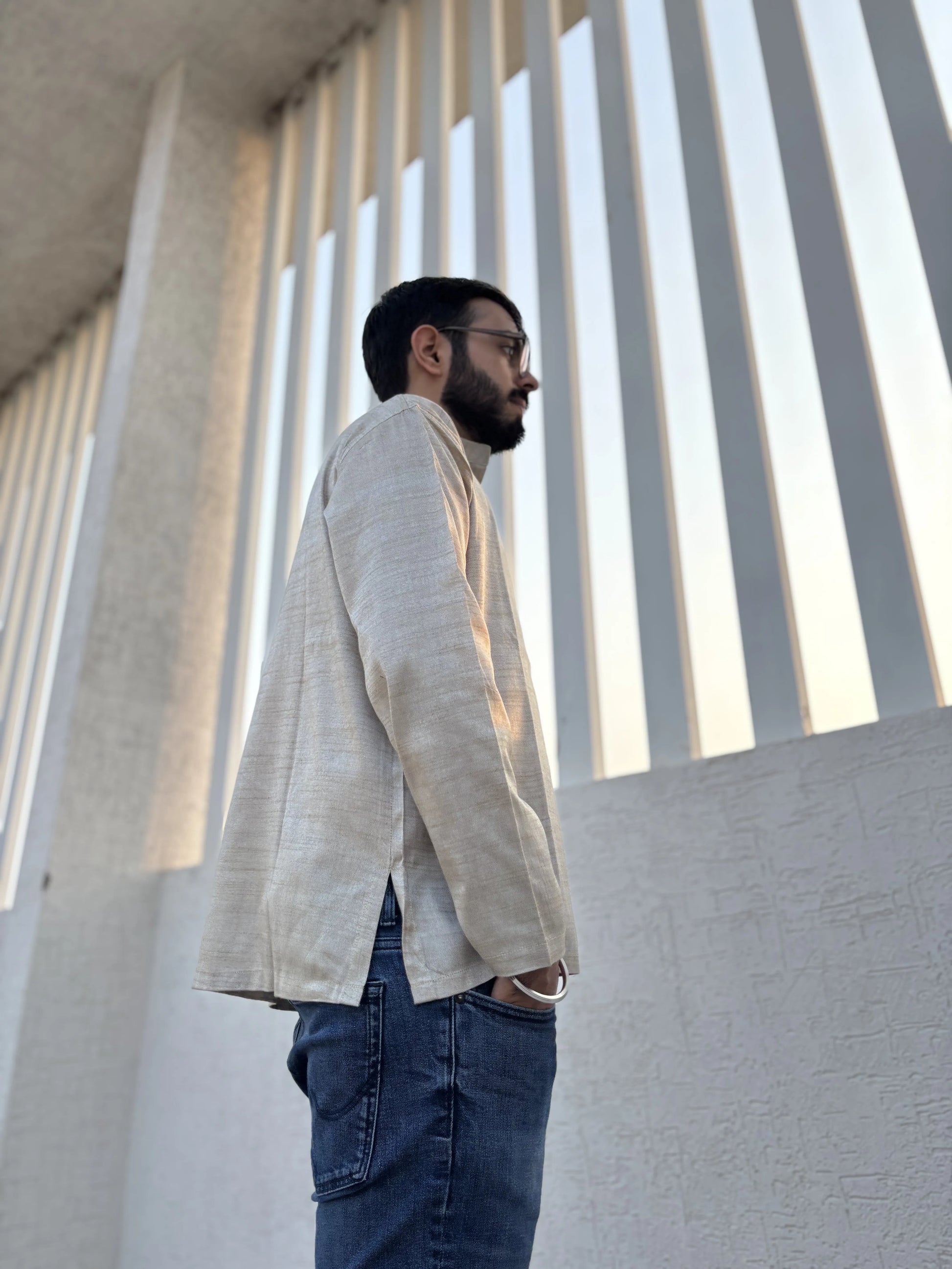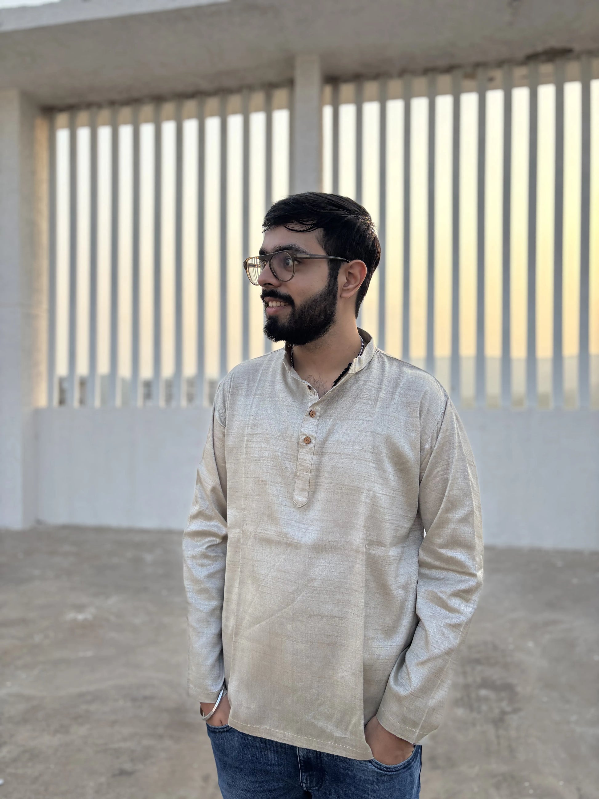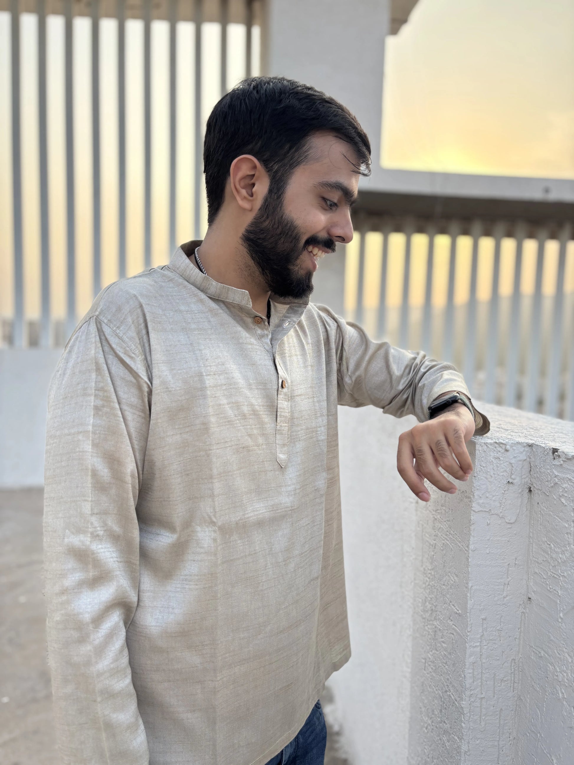 Light Gold Bhagalpuri Cotton Short Kurta for Men | Aasmaan