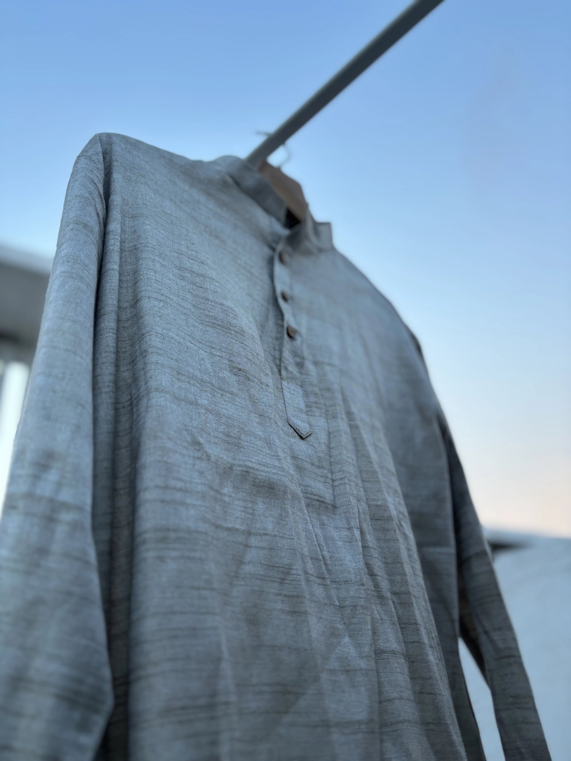 Craft: Tailored using Bhagalpuri cotton, known for its gentle texture and slight sheen