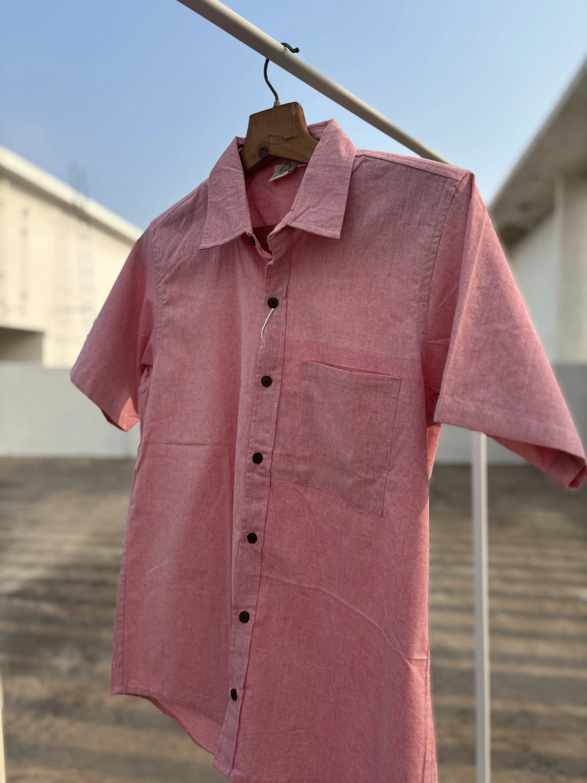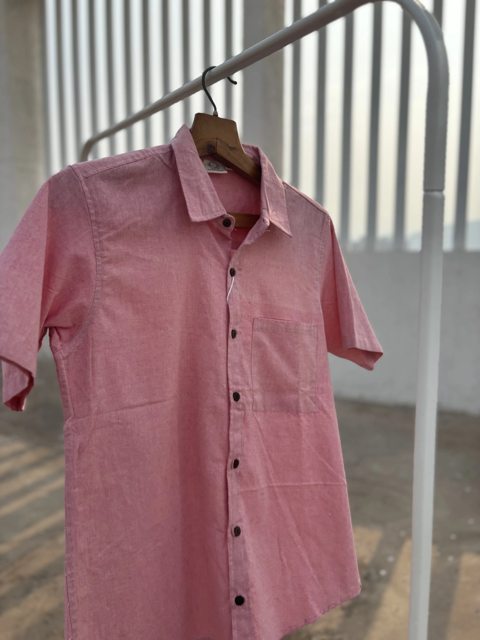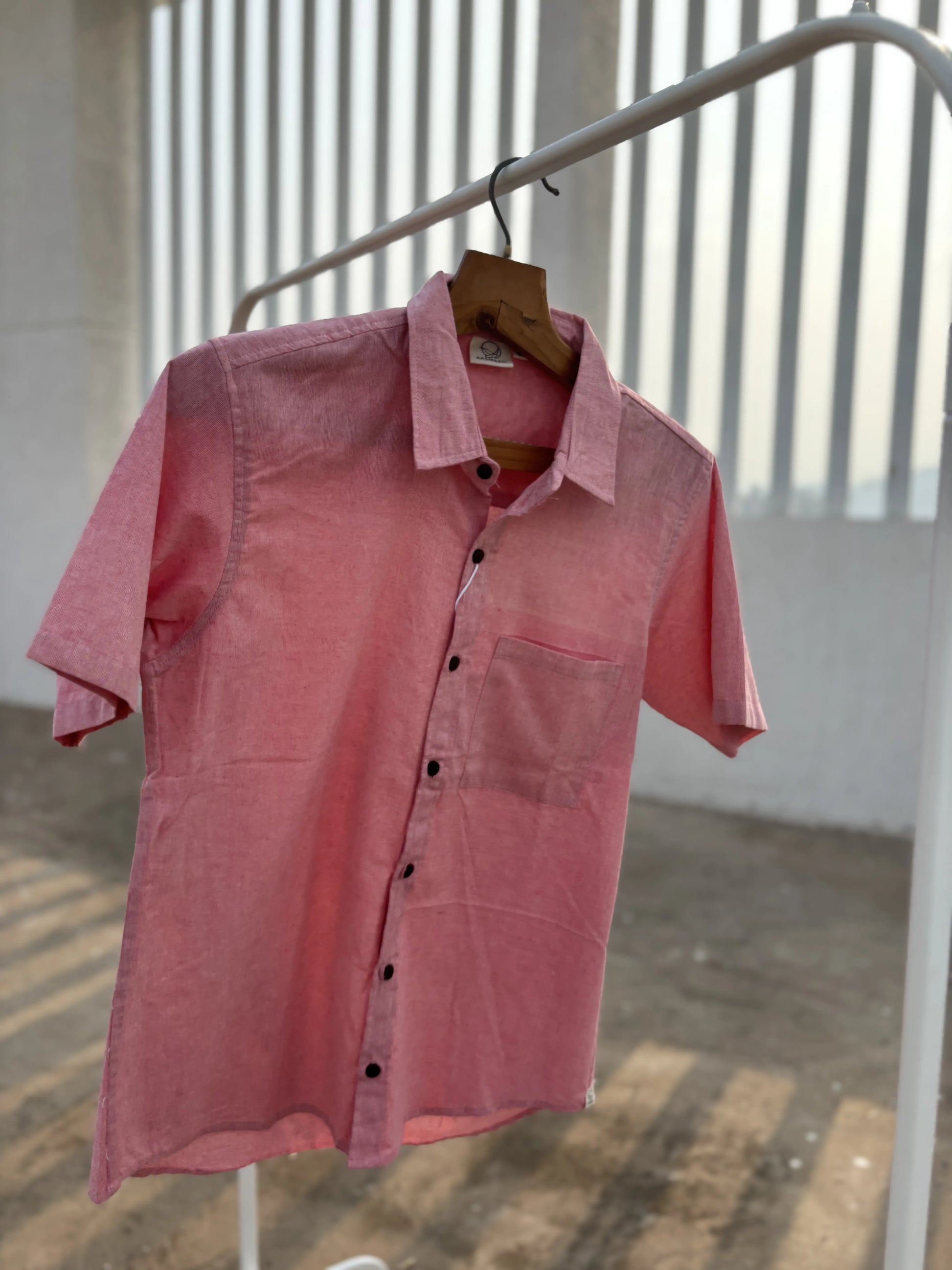Pink Solid Handwoven Cotton Shirt for Men | Aasmaan