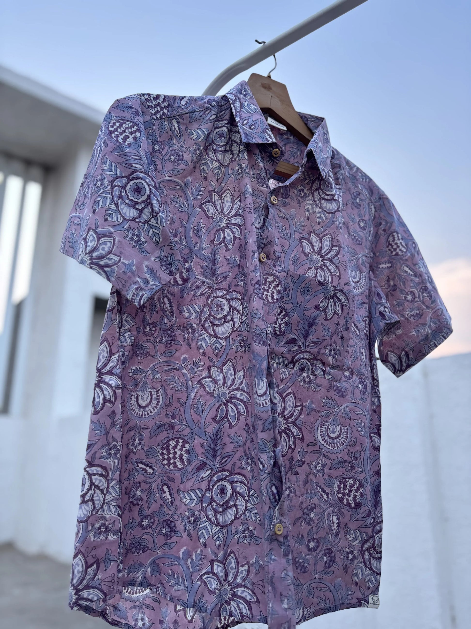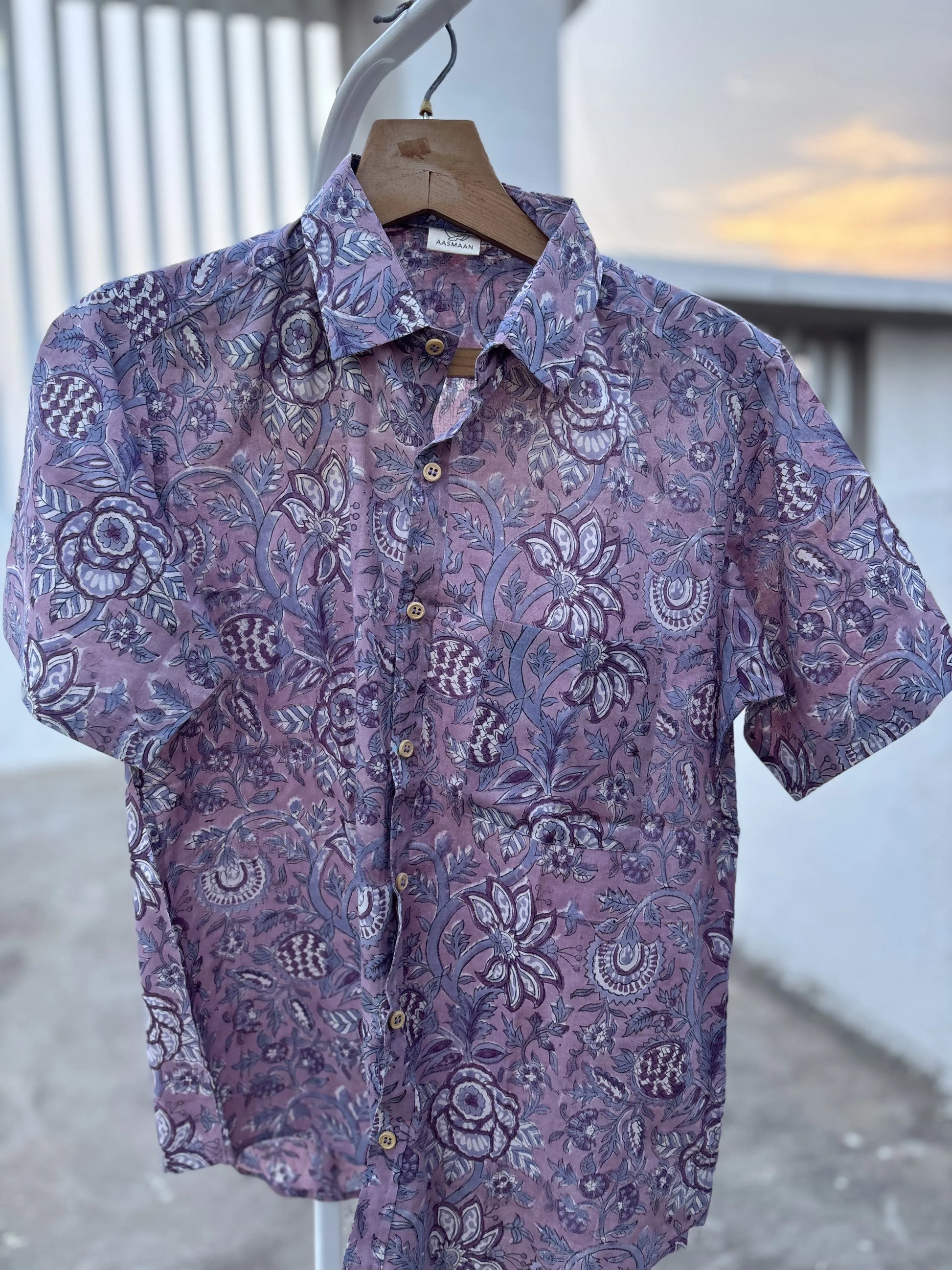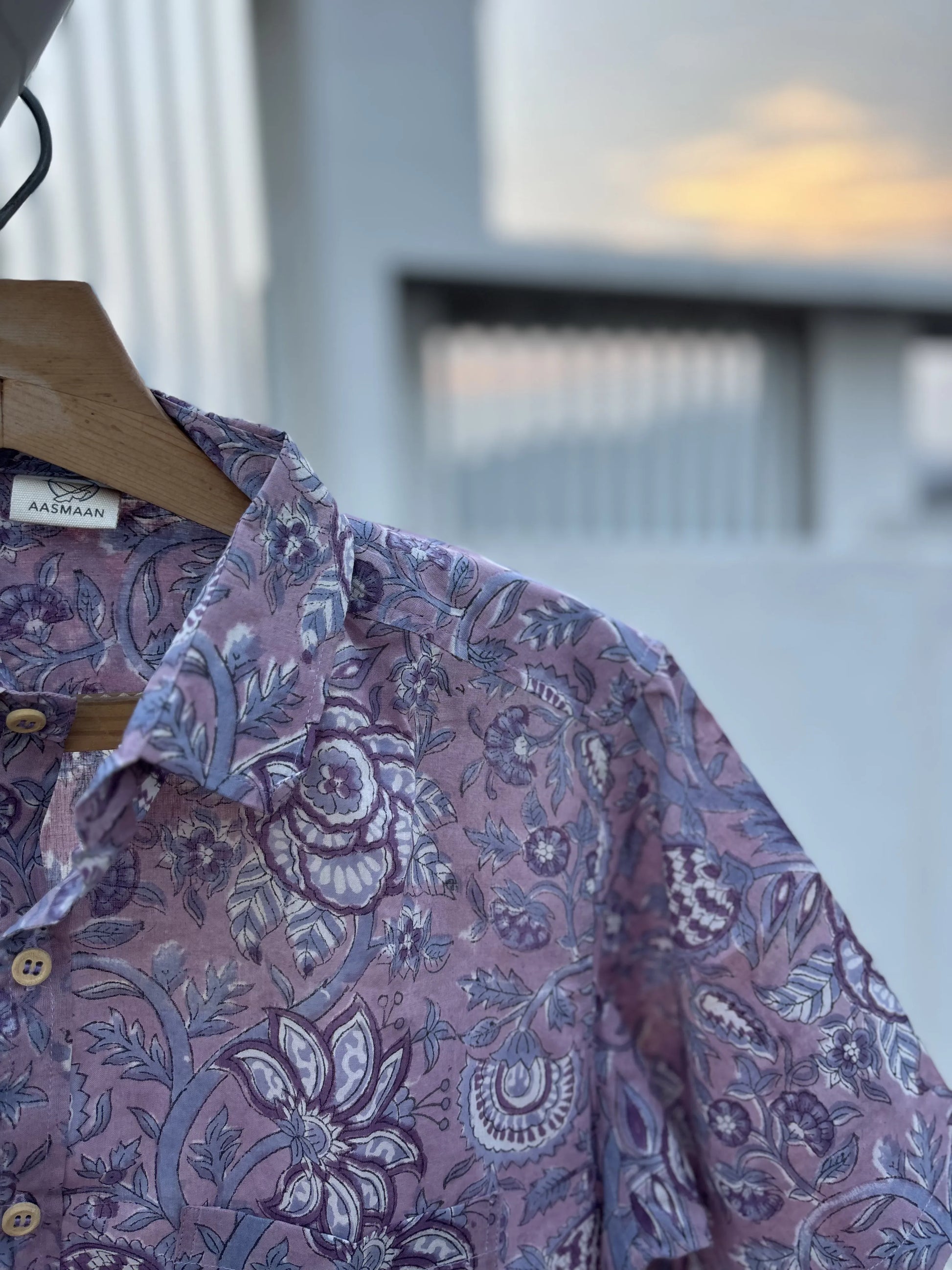 Lavender Floral Sanganeri Cotton Shirt for Men – Handcrafted | Aasmaan