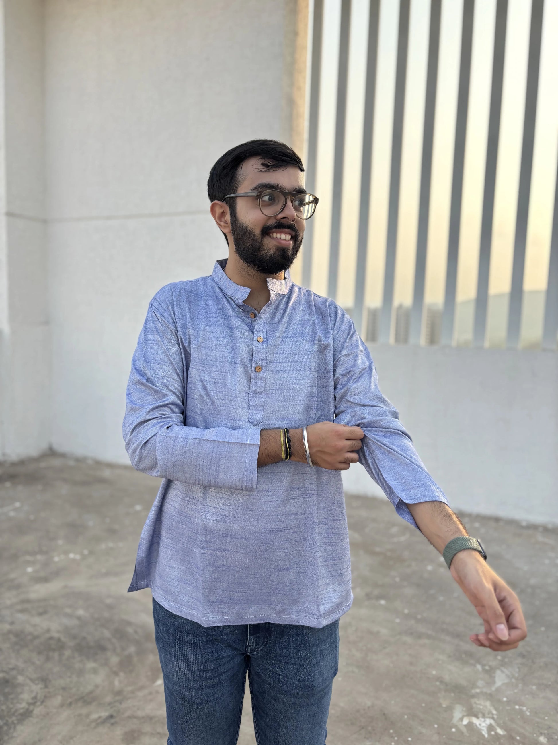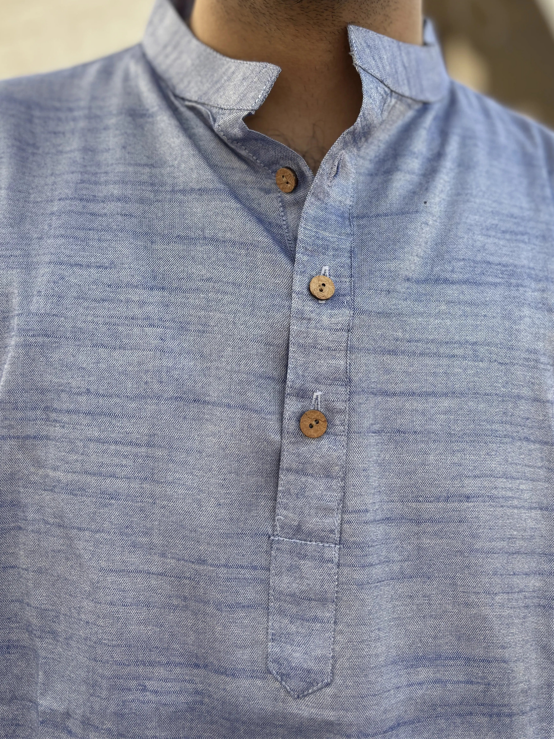 Sky Blue Bhagalpuri Cotton Short Kurta for Men | Aasmaan