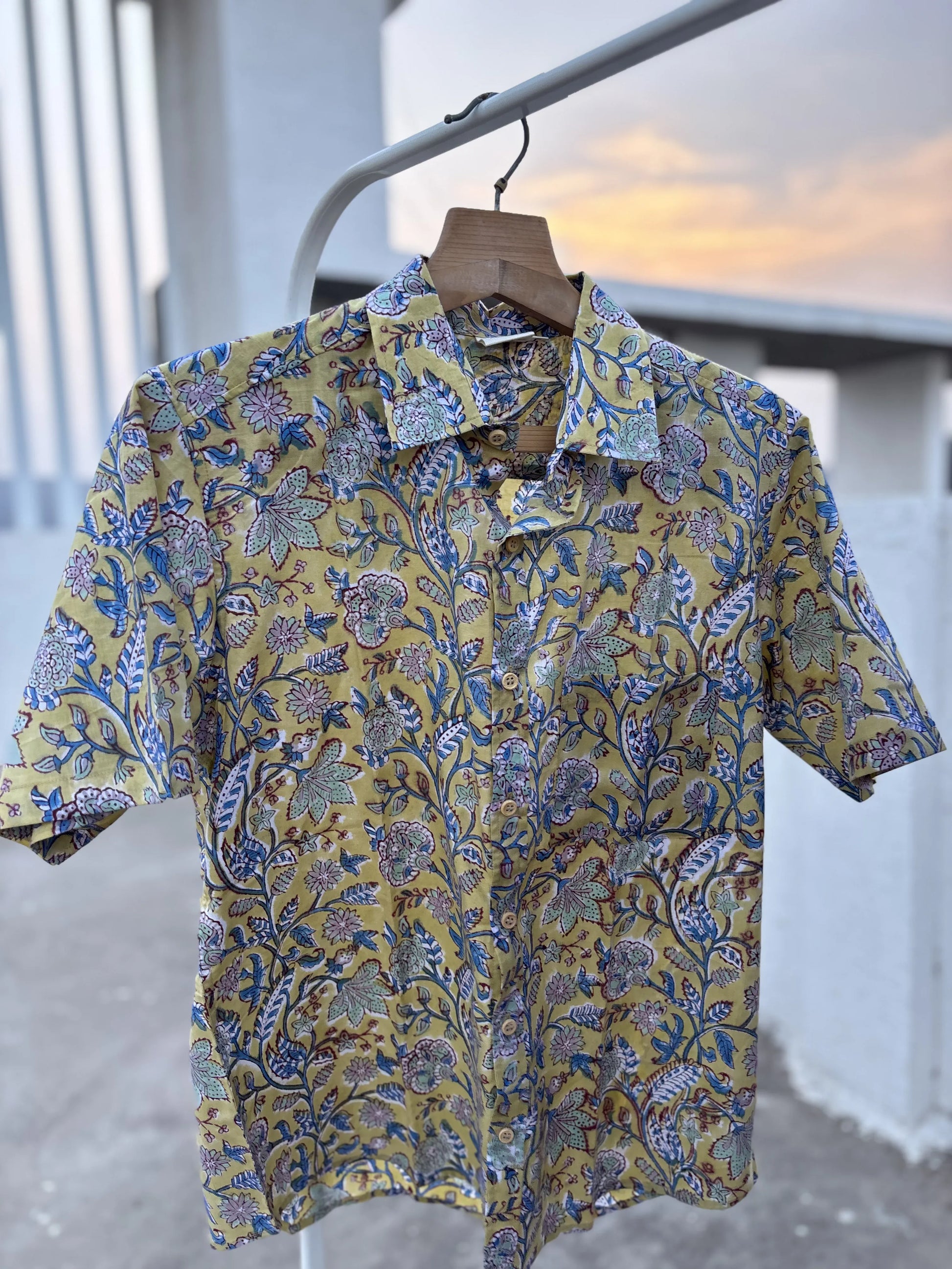 Yellow Floral Sanganeri Cotton Shirt | Aasmaan